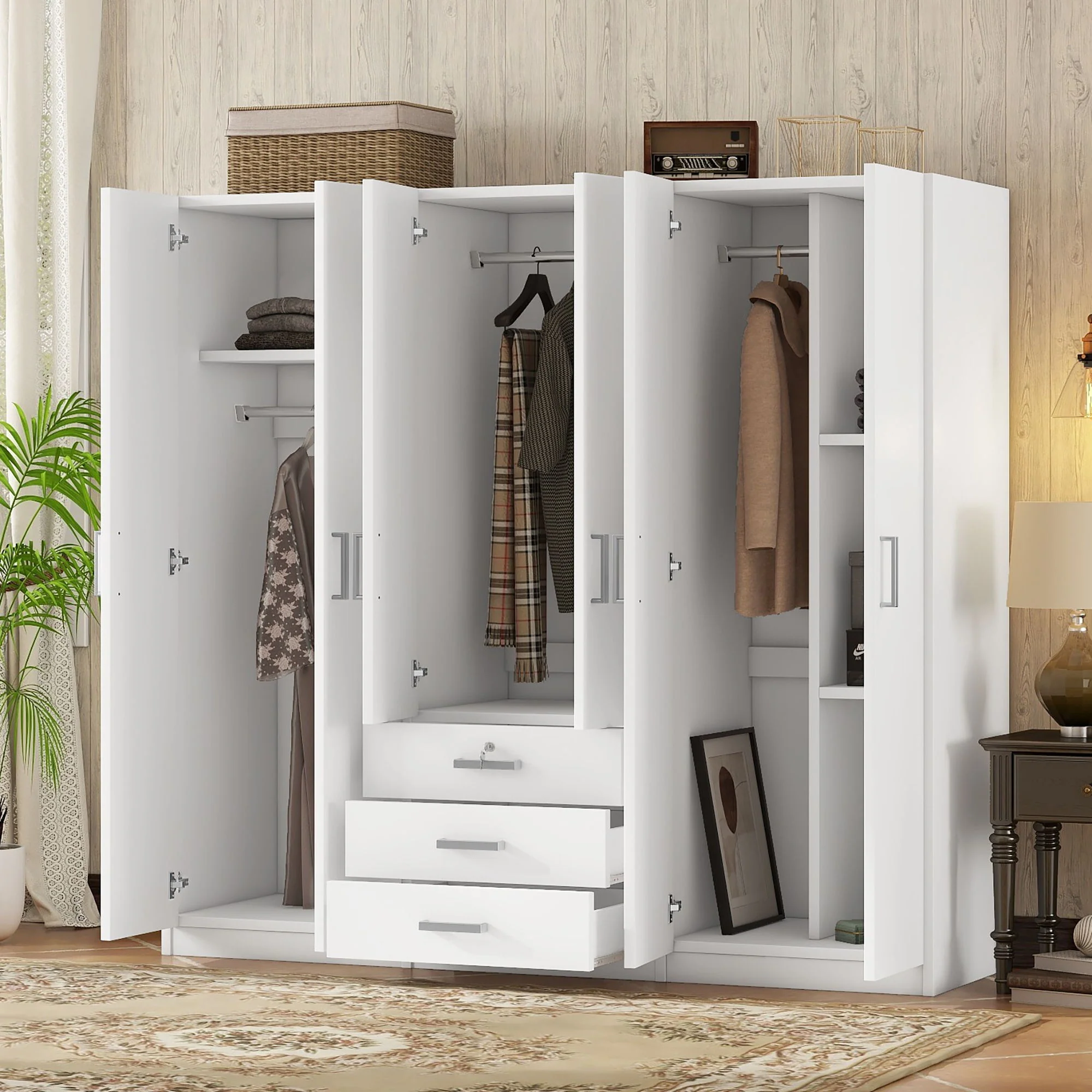 6 Doors Wardrobe Storage For Bedroom With Big Drawers - White